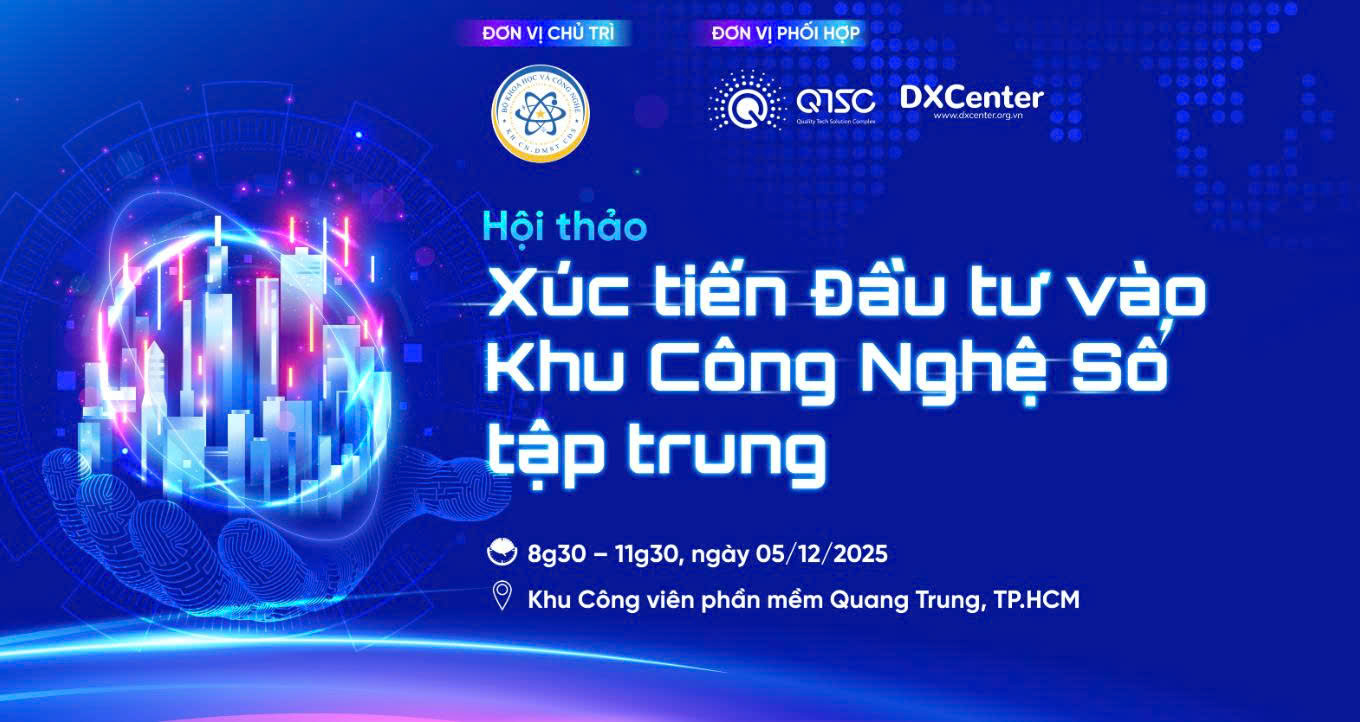 Thông tin chi tiết liên quan Hội thảo có tại https://dxcenter.org.vn/05-12-2025-moi-tham-gia-hoi-nghi-xuc-tien-dau-tu-vao-khu-cong-nghe-so-tap-trung-2025/#gioi-thieu