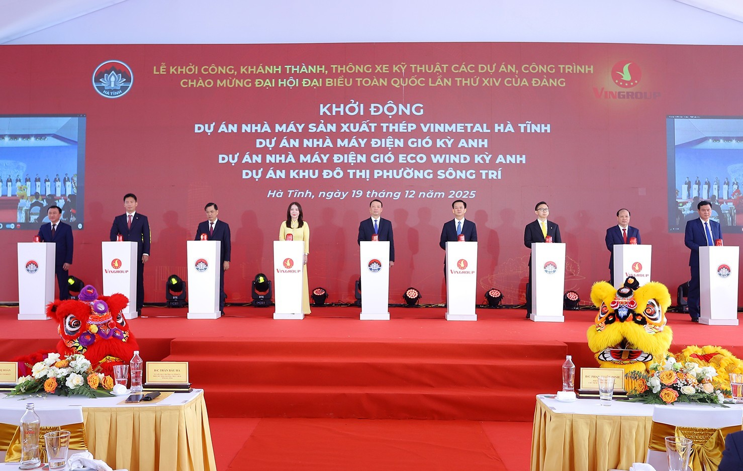 Sáng 19/12, tại Khu kinh tế Vũng Áng, Tập đoàn Vingroup phối hợp tỉnh Hà Tĩnh tổ chức khởi động bốn dự án trọng điểm: Dự án nhà máy sản xuất thép VinMetal; dự án nhà máy điện gió Kỳ Anh; dự án nhà máy điện gió Eco Wind Kỳ Anh; dự án khu đô thị phường Sông Trí.
