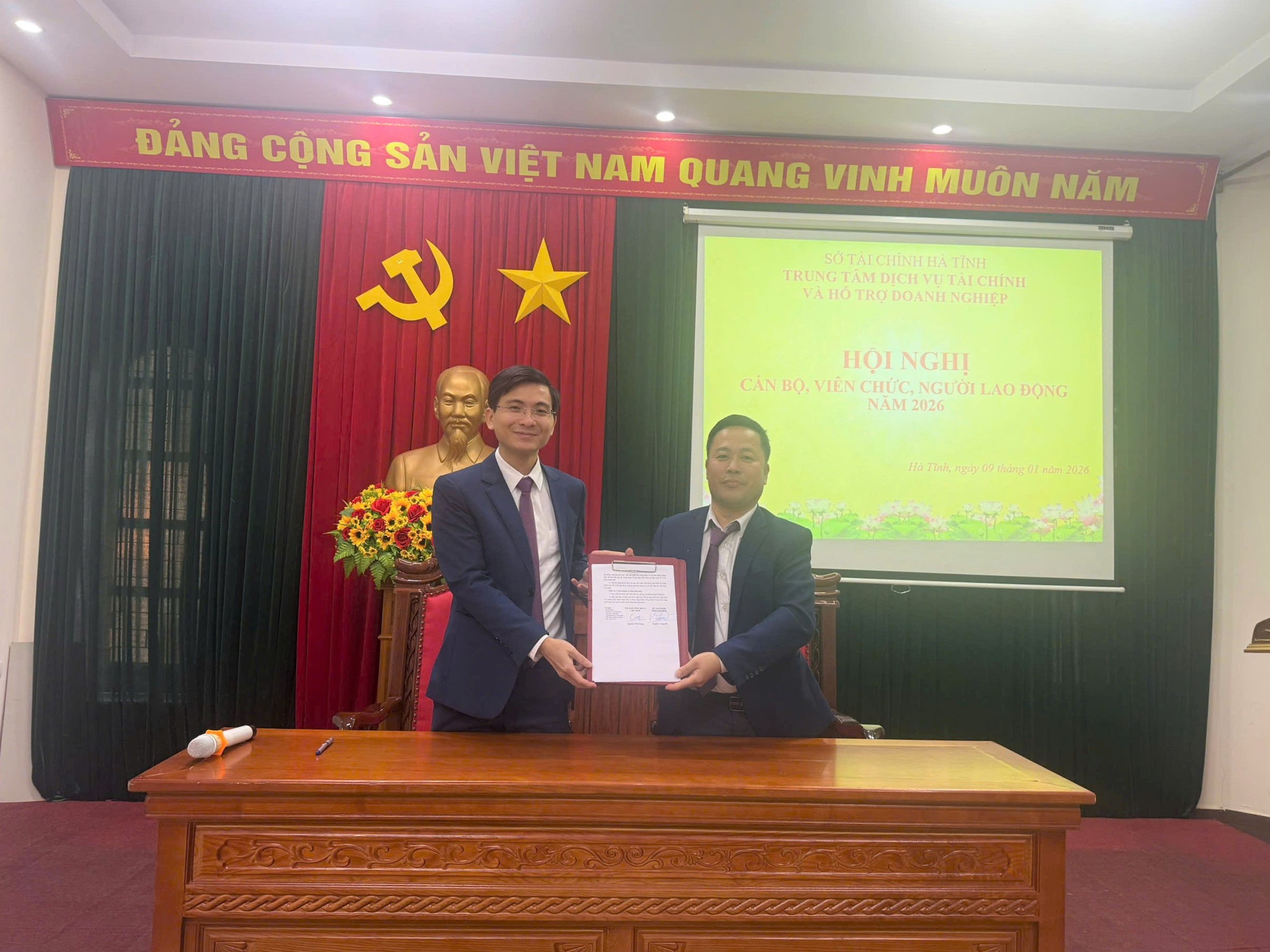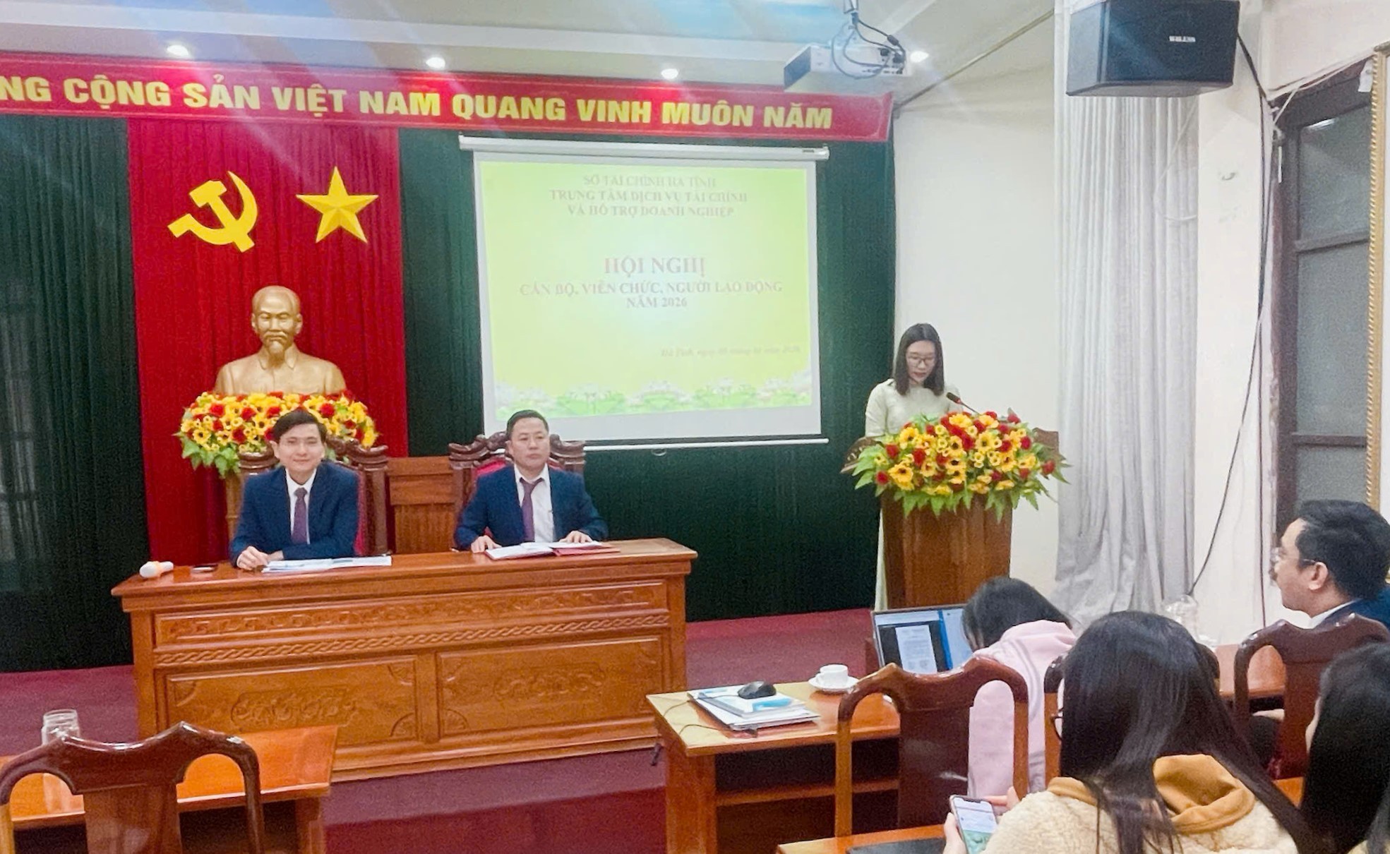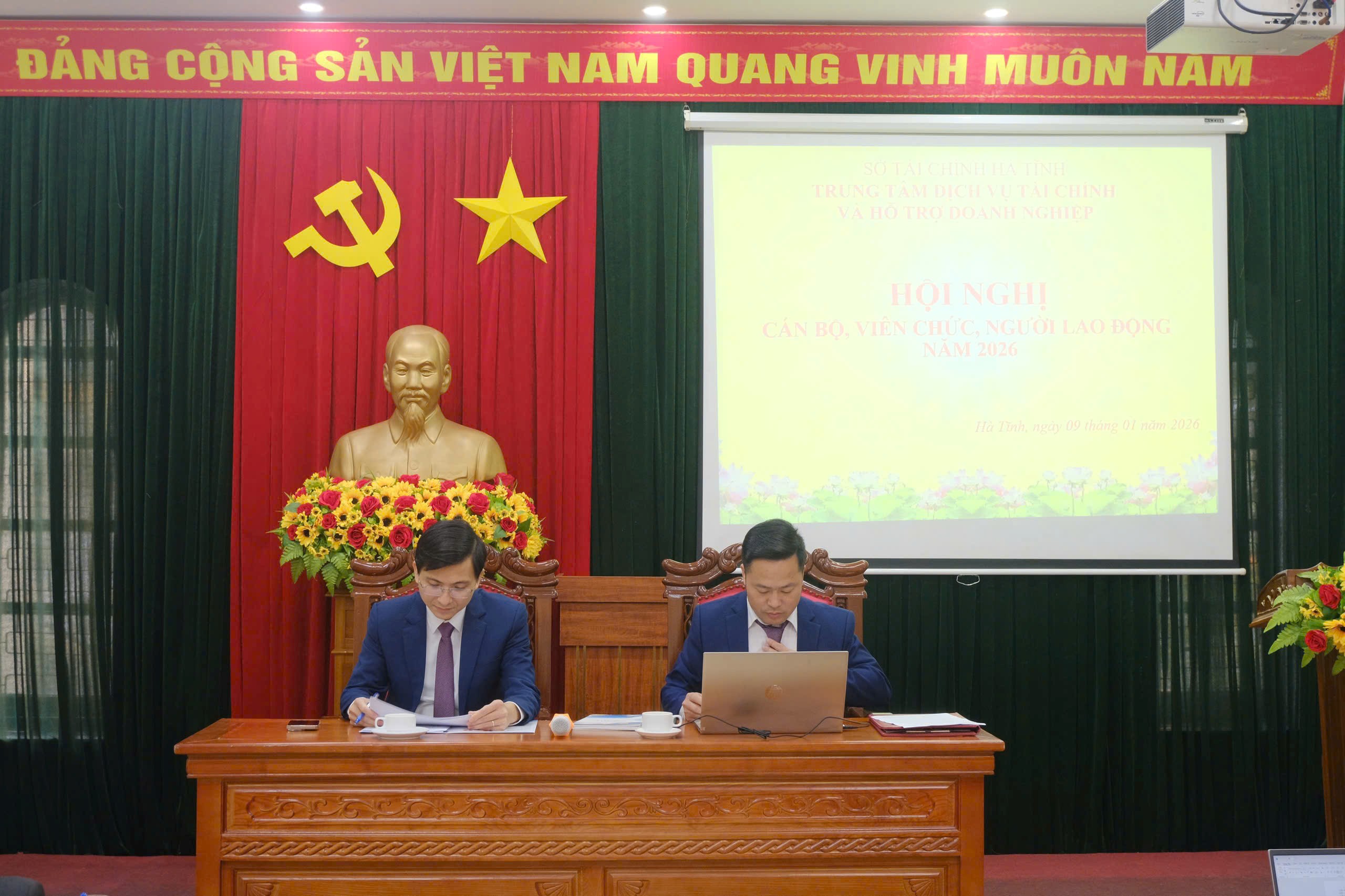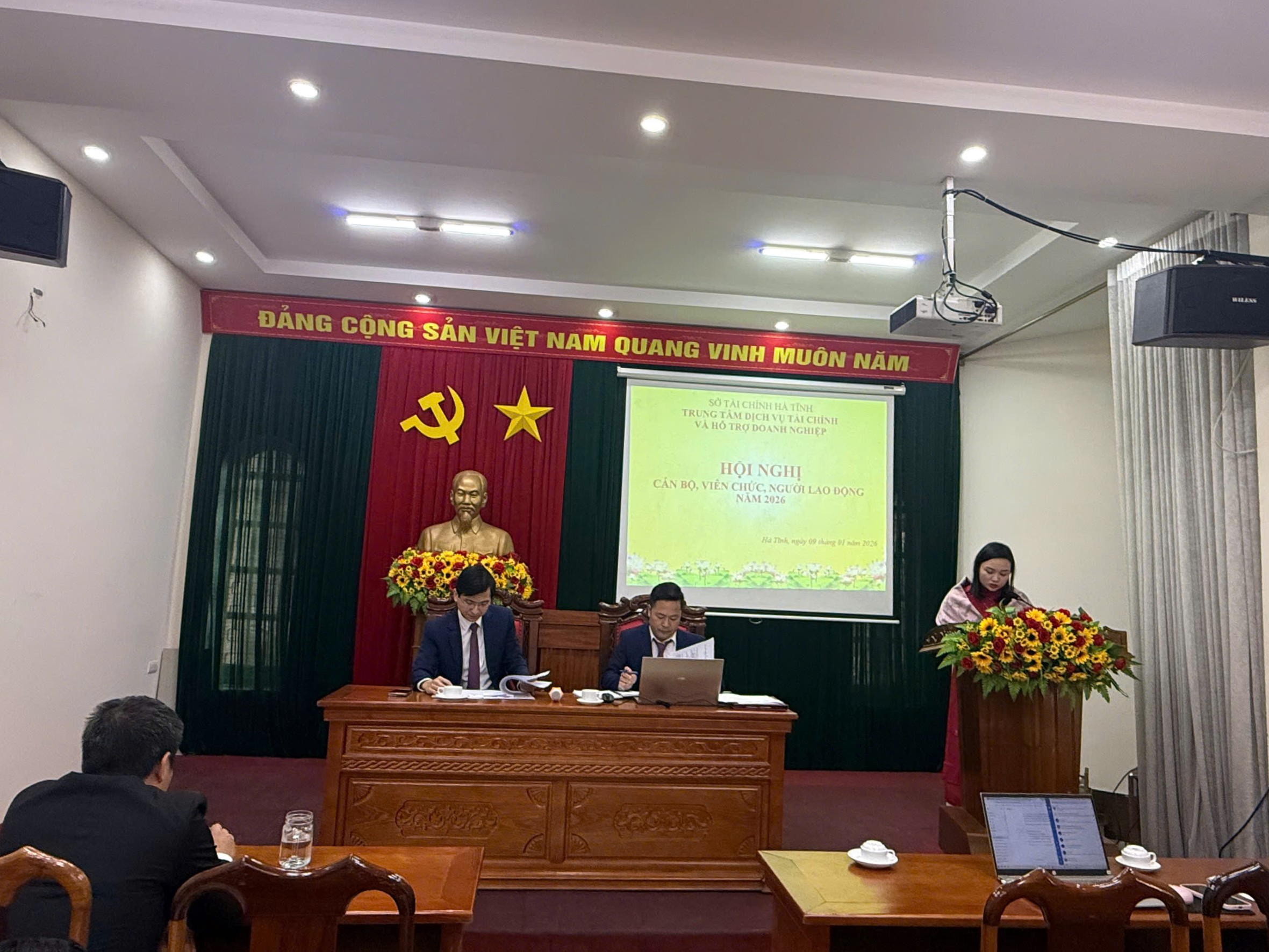 Ngày 09/01/2026, Trung tâm Dịch vụ Tài chính và Hỗ trợ Doanh nghiệp tổ chức Hội nghị cán bộ, viên chức, người lao động năm 2026. Hội nghị nhằm đánh giá kết quả thực hiện nhiệm vụ năm 2025; phát huy quyền làm chủ của cán bộ, viên chức, người lao động; đồng thời thảo luận, thống nhất phương hướng, nhiệm vụ và các giải pháp tổ chức thực hiện trong năm 2026. Tham dự Hội nghị có Lãnh đạo Trung tâm, Ban Chấp hành Công đoàn cơ sở cùng toàn thể cán bộ, viên chức, người lao động của đơn vị.